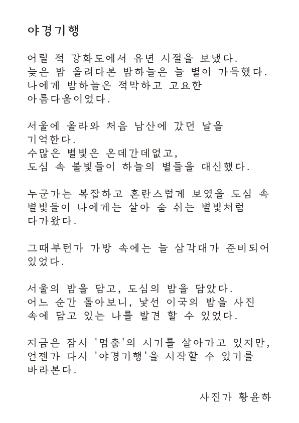 황윤하 개인전 : 야경기행 – 세상의 밤을 담다