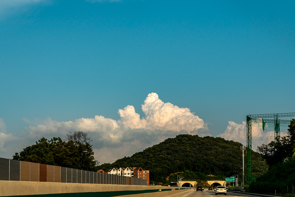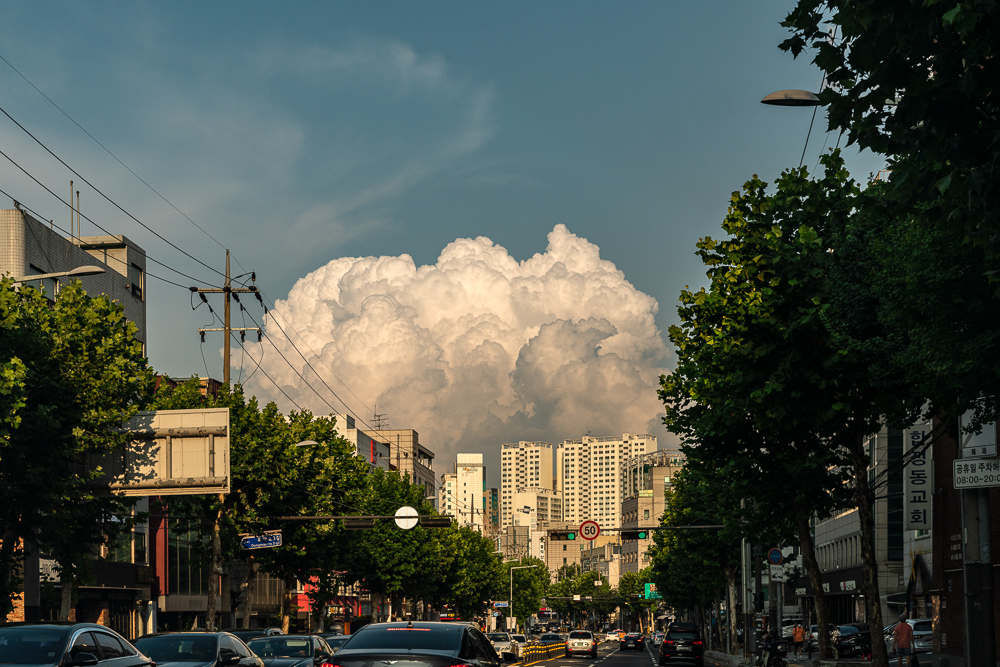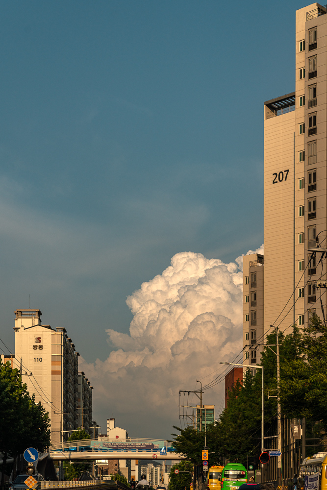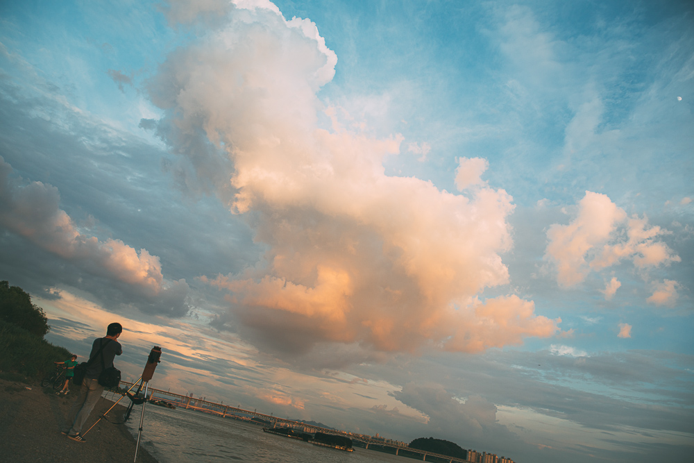 하늘에 피어오른 뭉게구름을 쫓아