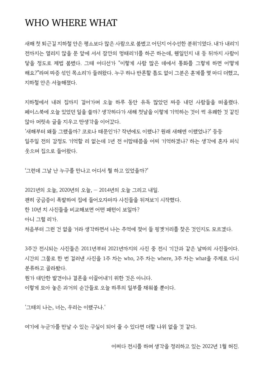허진 사진전 <WHO WHERE WHAT> 중 WHO